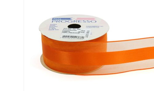 A fita de organza é elegante, leve e fácil de trabalhar. Possui aparência sofisticada, por conta do brilho, e certa delicadeza, por conta da transparência.